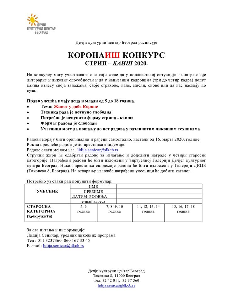 који имате између 5 и 18 година, и волите стрипове, или волите да их правите, Дечји културни Центар Београд расписује конкурс "Живот у доба короне".